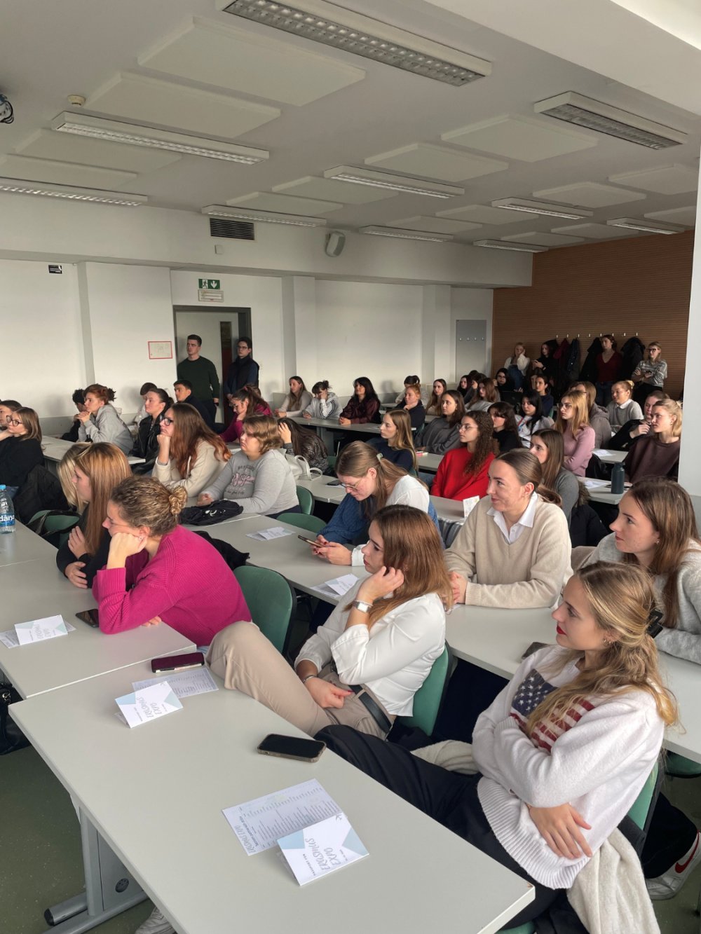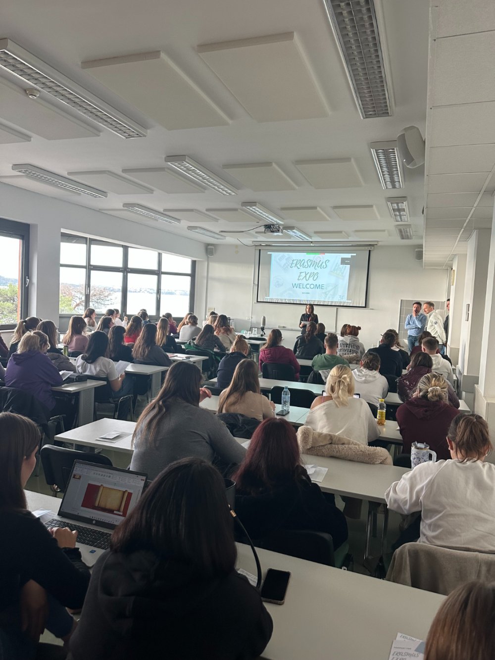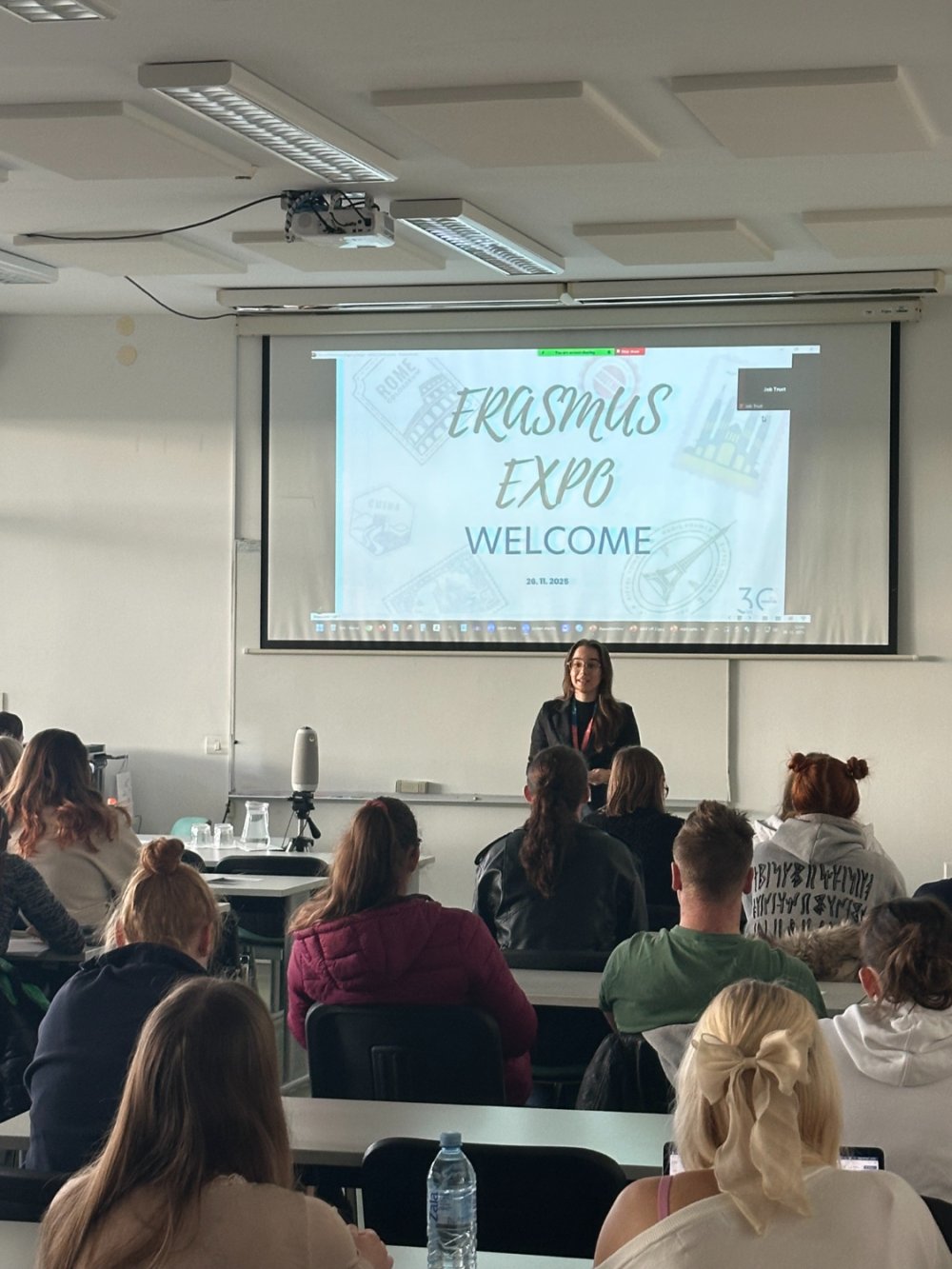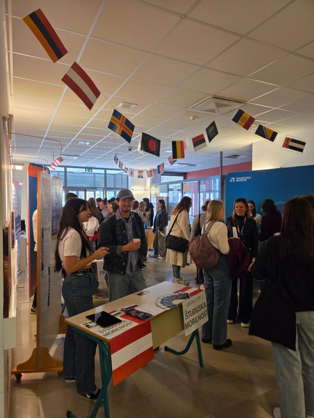 The event concluded with an informal Erasmus EXPO gathering in the first-floor lobby, where students had the opportunity to speak directly with those who had already participated in Erasmus mobility. Participants could gain first-hand insight into the experiences, challenges, and opportunities encountered during study or traineeship periods abroad. The conversations took place in a relaxed atmosphere, allowing students to exchange advice, gather useful information, and establish connections that may support them in planning their own mobility experiences.