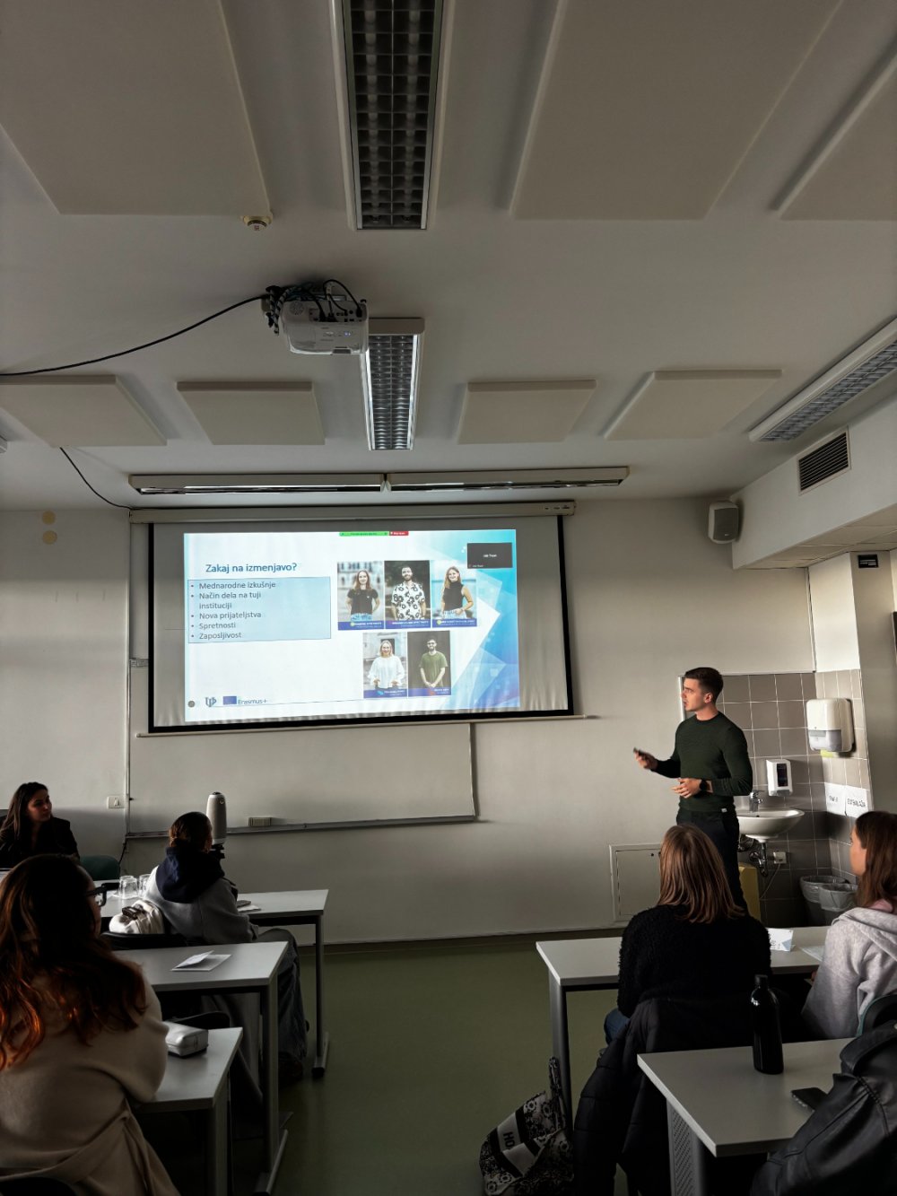 The event was opened by Assoc. Prof. Emil Juvan, PhD (Australia), the Dean of the Faculty, who emphasized the importance of international experience for developing competences, employability, and broadening young people’s perspectives. This was followed by a general presentation of Erasmus+ opportunities at the University of Primorska, prepared by Žiga Leban, providing students with an overview of available exchanges and traineeships.