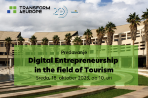 Z veseljem sporočamo, da naš partner v mreži Transform4Europe, Univerza v Alicanteju, organizira odprto dvojno predavanje na temo "Digitalno podjetništvo v turizmu," na katerem bo nastopil Matej Kalan, priznani slovenski podjetnik ter digitalni arhitekt in strateg. Izbor gosta temelji na predlogu Turistice.