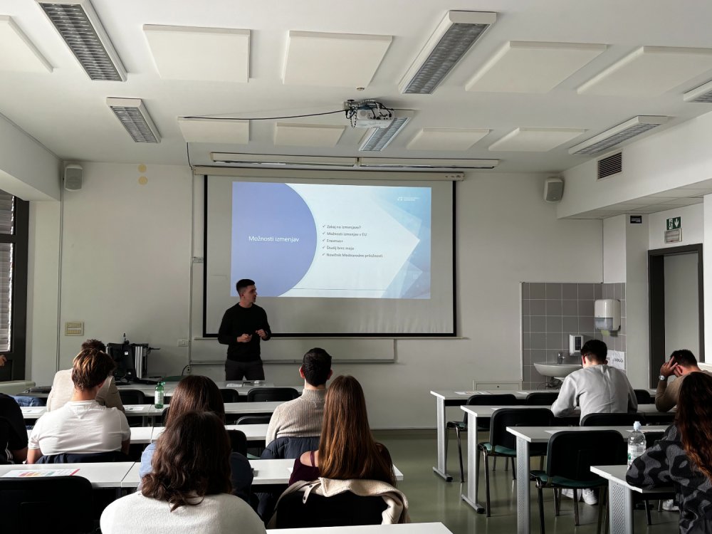 V nadaljevanju je Žiga Leban iz Mednarodne pisarne Univerze na Primorskem predstavil splošne informacije o programu Erasmus+ ter o aktualnem razpisu za študijske izmenjave ERASMUS KA131. Skupaj s Saro Nadarević, Erasmus koordinatorko UP FTŠ Turistici, sta študentom predstavila tudi pet enostavnih korakov za uspešno prijavo na izmenjavo.